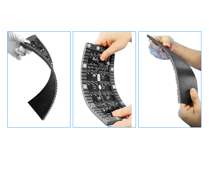 •Bendable Core Design: Utilizes PCB or PI flexible substrates to support minimum curvature radii of 20mm (convex)